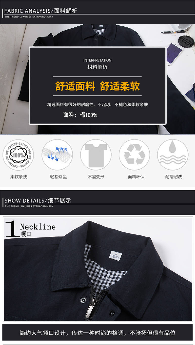 明成服飾定制全棉工作服經過定染水洗處理,可以做到不起球、不掉色、不縮水,穿著舒適,對皮膚沒有刺激,吸濕排汗,透氣性好。專業鄭州全棉工作服定制廠家,款式新穎時尚的鄭州全棉工作服定制款式。